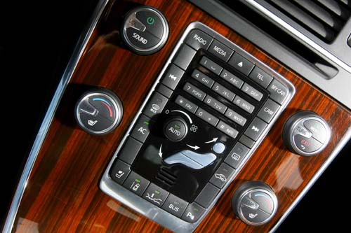 | 中控檯的按鈕數目雖然稍多,但象形化空調操作介面與最下方的安全配備按鈕,卻能提供相當便利與強大的各式功能。 |