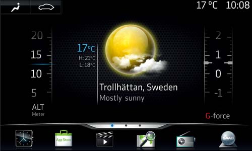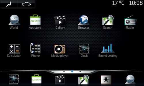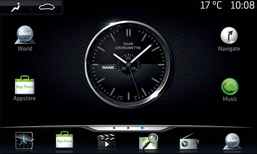 | Saab PhoeniX車上配置了「IQon訊息娛樂及通訊系統」;其基於Android程式建立,可以用來控制車上的「影音」、「衛星導航」、以及3G網路音樂下載。 |