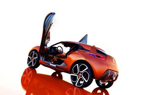Captur給世人最重要的新觀念是──跨級距車型的功能性已經朝敞篷車看齊!以往的Crossover大多以SUV為基礎,以較高的車身融入「跑車的性能」,甚至是「大型房車」的豪華配置,Infiniti FX以「擁有跑車靈魂的SUV」作了最佳的詮釋。而Captur的車頂採用可掀式設計,這從其車窗上緣四個銀色塗裝的「車頂釋放把手」可以看出端倪。掀開車頂之後的Captur僅剩下粗壯的骨架、藉以確保車艙乘員的安全性,至於一大片車頂要放哪裡?這恐怕就是另外的難題!因為是概念車、所以車艙創意可以天馬行空,滿車頂的橘色LED發光條間接告訴我們車頂還是有玻璃,雖然看起來像是敞篷車、但實際的乘坐感受還是比較像Peugeot的「玻璃車頂」。