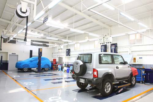 | 國際級的維修區呈現出通透明亮的視覺感受,其中更配置車輛廢氣收排系統,維修時,車輛原地發動並不會造成現場烏煙瘴氣,可以確實保障維修人員與車主的呼吸系統的健康。 |