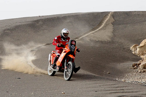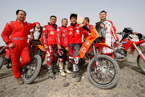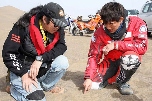 我應該最沒有經驗的就是沙漠路段,過沙丘時速度的拿捏,還有油門和離合器的控制都很關鍵,就像那些專業人士說的:快過沙,慢過水!過沙其實就是要快,不然慣性會把車身壓下去,如果你扭力太大,其實會掏沙子,所以你的轉速和速度都要講究。今天主要要瞭解沙漠地形還有穿越技巧,以前沒有翻越過這種刀鋒沙丘,所以一開始有心理障礙,很怕飛出去所以提早收油,所以每次都卡在那個半路上,現在比較清楚之後,可以把車的慣性發揮到極致。一旦知道你車輛的性能和你的技巧可以克服難關時,你就會玩得放心大膽,這樣有助於選擇最恰當的路線,不要強行穿越那些太困難的。比如有100個沙丘,你摔了2、3個,爬不起來,你就有可能會輸掉比賽!在拉力賽中讓你車輛的性能保持在最好的狀態,同時注意你的體力調節,還有就是避免失誤、迷路,需要的訓練專案不僅是騎乘技巧,更重要的還包括心理素質的訓練。