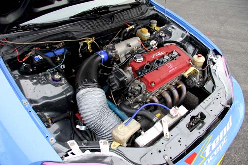 | 動力方面使用原廠CR-V下半座加上VTEC上座,再加上一組高角度凸輪軸,雖然不像其他頂尖廠車改裝幅度那麼大,但已經相當夠用。 |