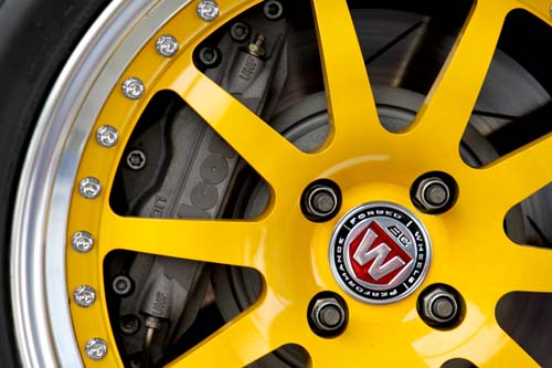 | Alcon賽車專用的四活塞卡鉗為此車提供了巨大可靠的制動性能,搭配上BC鍛造輪圈,使得戰力得以提升不少。 |