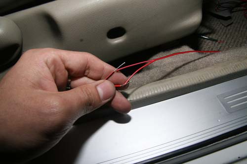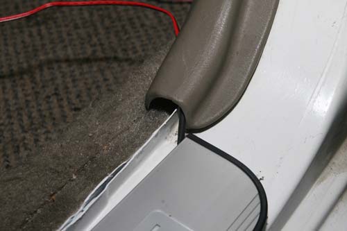 | 將延長線塞入膠條裡面,與前車門的冷光飾板電線一同從膠條內拉出,這樣就看不見電線的蹤影。 |