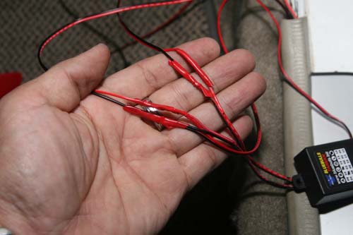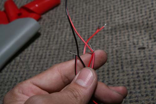 | 將剛剛接好的兩條電線與穩壓器上的供電線連接再一起,並利用絕緣膠布包覆起來,此時可順便將剛剛用剩的延長線接到另外一組供電線上,準備開始執行駕駛側的冷光飾板安裝工作。 |