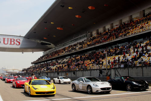 遊行車隊由法拉利車隊試車手馬克•吉尼 (Marc Gené) 駕駛8缸硬頂敞篷跑車California開道,緊跟其後的22輛法拉利車型中還包括599中國限量版跑車、Scuderia Spider 16M 限量版敞篷跑車及最具創新特色的運動型跑車458 Italia等。遊行隊伍在賽道上行駛了數圈,數萬名觀眾在現場觀看了此次盛況並為車隊歡呼。
