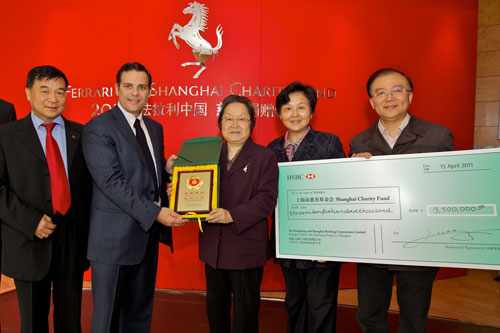 2011年F1上海大獎賽拉開戰幕,法拉利車主齊聚上海,與法拉利車隊一起盡享賽道激情。決賽當日,法拉利經銷商及數十位車主開著愛車組成車隊,在上海國際賽車場舉行別開生面的賽道遊行,這是F1自1950年創始以來,首次在決賽前舉行的單一品牌車隊遊行活動。此次慈善遊行由法拉利、法拉利車主俱樂部、上海大獎賽主辦單位聯合舉辦,並得到由Bernie Ecclestone 先生領導的F1管理委員會大力支持。活動得到了法拉利車主的積極回應並募得善款共計350萬元人民幣,旨在傳播賽車文化並為慈善基金會募集善款,用於幫助有醫療需求的兒童。在上海賽事期間,法拉利還舉辦了一系列活動,包括盛大的年度F1晚宴及善款交送儀式。法拉利大中華區總裁及首席執行官Mr. Edwin Fenech(范艾聞)先生,同上海法拉利俱樂部主席朱裕華先生及法拉利中國車主會會長甄榮輝先生將全部善款共同轉交給上海市慈善基金會名譽理事長陳鐵迪女士。