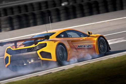 MP4-12C發表一年後、正緊鑼密鼓準備交車給市售版買家時,McLaren於3月11日正式發表賽車規格的MP4-12C GT3、並在英國銀石賽道進行首次公開測試。儘管這是首度將它實際拉上跑道,但先期的研發工作都已經在McLaren總公司內供F1研發的模擬器上完成,因此這次的首測非常順利,並將於4月取得FIA歐洲賽車規格認證。