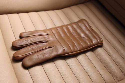 | 車室內真皮座椅表面復古的直條紋縫線,是參考Trussardi經典的手套系列設計而成。 |