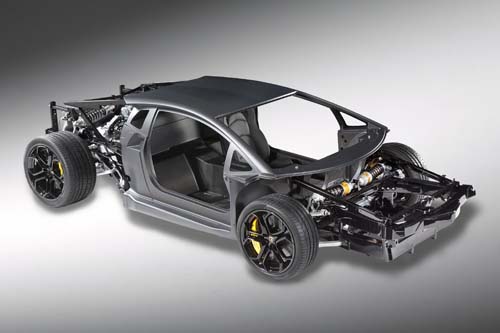 | 為追求極致的輕量化與車艙安全性,Aventador LP 700-4座艙採用單體碳纖維材質製成,輔以鋁合金前後懸吊結構,造就全車僅有1575公斤的車重。 |