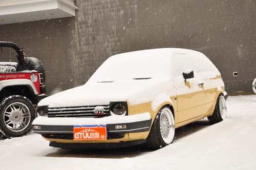 | 如果參展車變成了現在這副摸樣的話,相信一定會很有意思,這輛Golf MKII在雪花的裝束下顯得更具個性。 |