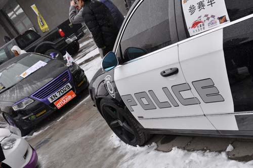 | 一輛「POLICE」塗裝的Passat B6正在對一輛「表情邪惡」的Passat B6進行「盤查」。 |