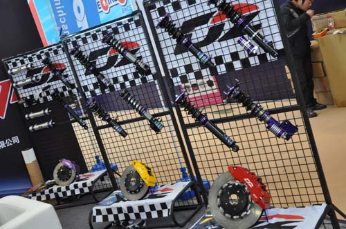 | D2此番展出了他們的全線產品,其中包括:高低軟硬可調避震器、多活塞煞車、賽車座椅以及四點式安全帶。 |