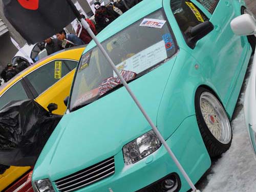和室內比較常規的展位相比,室外展區更具特色,由車友自行擺放的造型以及看似微妙的區域劃分都帶來了相當不錯的視覺效果,例如有些俱樂部將展車擺成party造型,有些則一字排開,還有些擺成了梅花樁的造型等,諸多的創意將本屆車展的室外展區大量吸引人氣,並一舉超過了室內。本屆車展Option展位更是受到了更多車友及店家的鼎力相助,展出車輛從上次的4輛一下飆升至8輛,筆者作為展會中的工作人員再次特別感謝LowEr Club俱樂部、KC汽車工藝、魔彩以及JR Team的展車提供,另外也對眾多給予我們幫助的車友表示衷心的感謝。