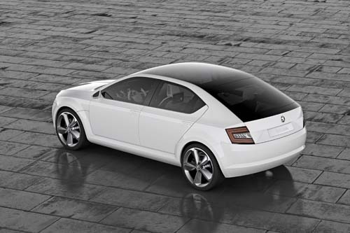 新車採用了新世代車款流行的長軸距、短前後懸的比例安排,藉此追求更大的車內空間,近似於標準Coupe的車頂線條則帶來了流線的視覺效果,與大型斜背尾門做出滑順的連接。波浪型引擎蓋此一設計特徵則仍保留在Vision D車上,但是在每個區塊間的比例進行了微調,但依舊保有Skoda的經典風味在內。在Vision D車上,Skoda也將LED燈具運用在這部車上,而且除了大燈之外,就連霧燈部位也加上LED導引光條,尾燈組也採用相似的設計,我們推測LED日行燈這項設計應會快速運用在近期的Skoda新車之上。