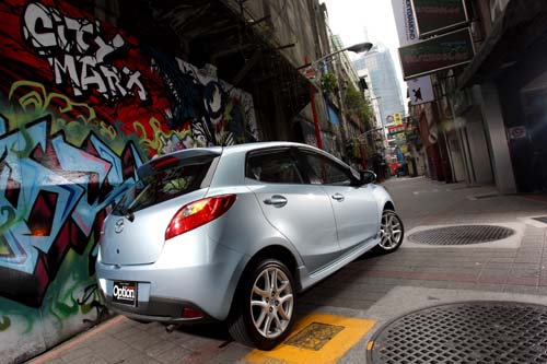 動力表現部分其實就沒有太大的改變,依舊是搭載與日規版本相同的1.5升MZR本體,最大輸出效率可達103hp(76千瓦)/13.8kgm(135牛米),變速系統部分則並未搭載夢想中的CVT,而是保留傳統的四速自排設定,不過藉著僅1039kg的輕盈車身,踏下油門的反應也還算是輕快,一般市區超車也是一氣呵成並不會有心有餘力不足的情況,另外這次的改款最具特色的就是MAIDAS 3H高剛性車體結構強化及懸吊阻尼的提昇,實際在快速道路以百公里以上的時速殺進彎內,新馬二的穩定性的確是相當高,其實已經有種類似歐系鋼砲的路感表現,不過筆者認為這樣的提昇並不是為了讓新馬二跑多快或是多刁鑽,而是能讓女性車主在駕馭上能夠得到更高的保障,且整體提昇了車輛極限後,也等於是提昇了失控的界限,不僅是女性駕駛,相信這樣的設定也足以滿足大多數的年輕男性車主。