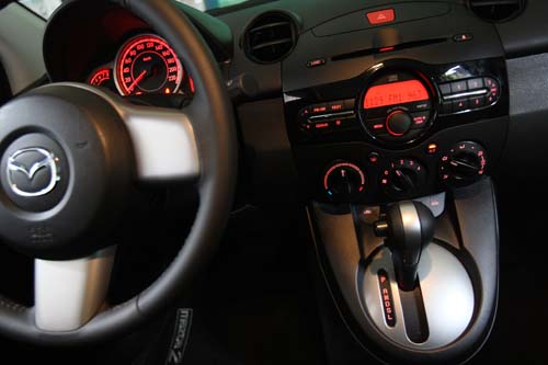 第一眼看到New Mazda2時,有種似曾相似的感覺一股湧上,冷靜一想就是那個新款的微笑保桿造型,與New Mazda3、6幾乎如出一轍的感覺,也讓原本有Sport及一般版本區別的舊馬二設定,在新款車型上一併廢除,無論哪個等級都可充分享受新款極具運動感的年輕外觀,也讓Mazda家族車輛更具一致性,而全新的超大氣壩造型,也讓霧燈造型做了調整,從車頭望去新馬二有者更厚實的感覺,搭配上Sport版本全新採用的16吋跑車鋁圈,使得新馬二無論從任何角度望去都擁有無懈可擊的運動線條。內裝部分正好與外觀相反,將過去較具跑格的銀色飾板廢除,採用更加沉穩的黑色鋼琴噴漆塗裝飾板,另外整個中控檯線條也採更一體性的設計,整體看起來也更加清新許多,而內裝部分最大的進化,儀錶內鑲入了智慧型旅程行車電腦,可提供更多的行車資訊,且女性車主最想知道的燃油表現顯示,更讓女性車主知道何時該進加油站,降低顧路的有趣情況。