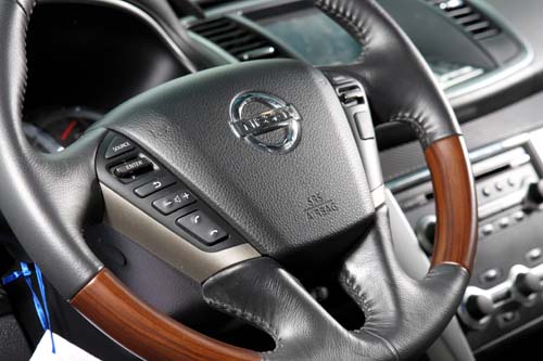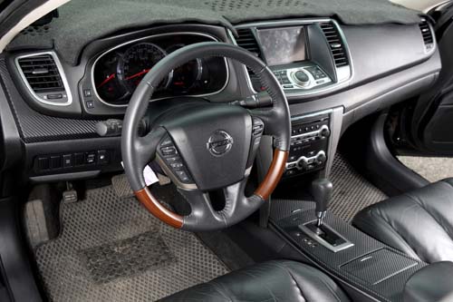 | 原本屬於高級房車等級的豪華內裝,為了搭配修羅式樣的動感外觀,特地將原來的核桃木飾板全數改為Carbon貼紙取代。方向盤也改為原廠3.5L版本的核桃木款式。 |