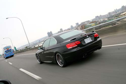 發動引擎,車尾傳來陣陣低沉的排氣聲浪,稍微熟悉一下好久沒摸到的BMW六速手排換檔行程與離合器接合的高度後,隨即上路試駕,待一段沒車的空檔隨即退檔踩盡油門,原本溫文儒雅的335i,馬上變身為動力猛獸,雖在3000rpm前還可感受到些許渦輪遲滯的現象,然而一過此區間,強大而猛爆的推力立即湧現,轉速指針直奔錶底,換上3檔加速力道快速銜接而上,再次驅動後輪向前推進,且一路換到4檔,DTS燈號依舊閃爍,其強大扭力可見一斑,與筆者過去試駕過的E92 M3相比,這部335i的中低速扭力輸出充沛許多,且動力隨傳隨到,加速過程是突然而強烈的,至於E92 M3的加速則是漸進且綿延不絕,愈高轉速引擎愈加活潑,兩部車雖同為雙門兄弟,但個性卻截然不同。雖然這部車目前已擁有強大的動力表現,不過車主似乎還不滿足,打算在日後進一步改裝GIAC Stage 3的動力套件,並透過多片式離合器、AA快排與Bilstein PSS 10避震器等傳動、底盤強化部品,徹底將這部車的極限壓榨出來,屆時筆者將會透過加速測試的過程,來完整呈現此車的實力,敬請拭目以待!