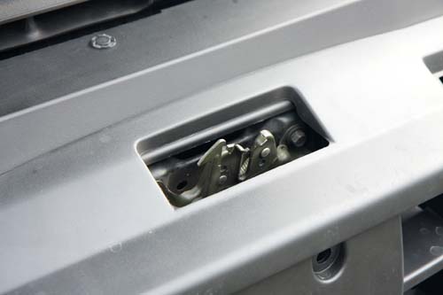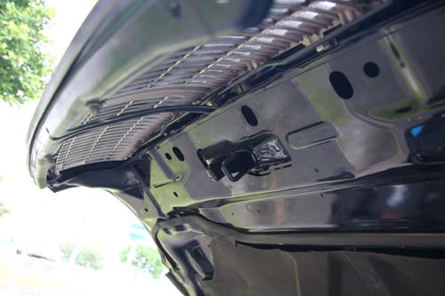 其實Infiniti Q45與Nissan President主體車身結構並無太大的差別,其外觀可直接辨識的就是水箱護罩的不同,Nissan President的水箱飾罩設計為直瀑式,而Infiniti Q45則為多橫桿鍍鉻飾條做區別,但光說這點不同可是讓亞多邦斯的李先生翻遍的手邊所有兩者日文車型零件分解圖及資料,才搜集到多數換裝零件清單,改頭換臉的浩大工程,難免會有遇到瓶頸的時候,在換裝Nissan President的引擎蓋後,卻發現兩者引擎蓋上的扣勾設計大不同,因此,裝置在車前大樑的引擎蓋鎖確定無法延用舊有的型式。