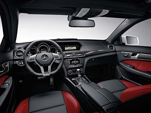 內裝方面也同樣延續C-Class Coupe的基礎鋪陳,但其中最為搶眼的莫過於造型絕佳的雙前座跑車座椅(已整合主動式頭枕),以及AMG專屬的三幅式樣跑車多功能平底式方向盤+金屬材質換檔撥片設計,搭配多種選擇的內裝配色與適度點綴的碳纖維飾板,提供兼具高級質感與運動風格的座艙氛圍。