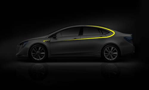| 在C柱尾窗部分,以「回鋒」的鉤狀曲線車筆觸結尾,讓車身側面造型簡潔,同時又蘊含著蓄勢待發的力度。 |