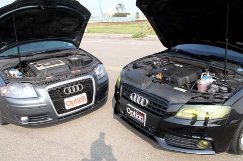 其實在VAG車系中,搭載2.0L增壓引擎的車款真的不少,像VW車系的Golf、Sirocco、Passa、Tiguan等,在Audi的部分,則有A1、A3、A4、A5、A6、Q5、TT等,真令人目不暇己。這次名宸車業提供的兩輛車改裝幅度較大,一輛是搭載舊款引擎的A3 2.0 TFSI,另一輛則是搭載新款引擎的B8 2.0 TSFI。