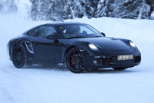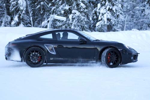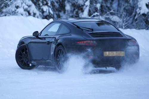 我們在北歐極圈內發現了正在進行低溫測試的新款911(廠方代號991),有別於先前的測試車輛身披厚重偽裝,這次出現在極圈內的測試車幾乎沒有偽裝,讓我們得以一窺新世代911的全貌。根據非正式的消息管道指出,新一代911的車身長度將會比997略長,車長會增加至接近4.5米,在車身長度延長時,軸距也會略為增加,車高也會比現行車款更低些。