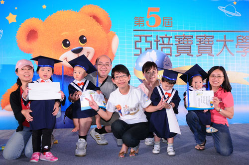 現場二百多位參與寶寶大學的小朋友中,最吸”睛”的當屬岳家三胞胎姊妹。二歲一個月大,暱稱「三寶妹」的岳家三胞胎姊妹,不約而同地自小便對發光物體與天上星星特別感興趣,每當全家人一起在晚上外出散步時,「三寶妹」總愛抬頭仰望星空。在國小擔任老師的「三寶妹」媽媽十分肯定第五屆亞培寶寶大學邀請臺北市立天文科學教育館針對一至三歲幼兒設計的天文科學內容,來啟發寶寶的全腦學習,她表示幼兒科學教育在台灣真的十分罕見,因此當一得知有此活動便馬上替「三寶妹」報名。