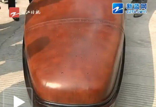 | 這輛皮鞋電動車共使用了20米的牛皮革,相當於5頭牛身上的牛皮。 |