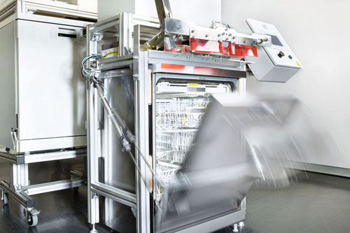Miele洗碗機的測試包括:在75℃的溫度下運轉7,500次,此數值表示若一天使用機器一次,等同於可使用20年。