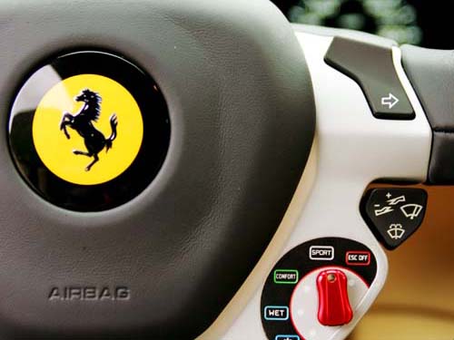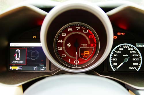 | 儀錶板的架構與陳設跟458 Italia採用相同的設計邏輯,兩側擁有獨立的多功能液晶顯示幕。 |