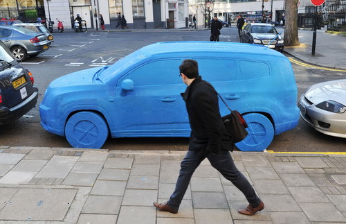 車廠要為旗下的新車款進行廣告宣傳,總是絞盡腦汁的想去創造話題、找名人代言或是拍攝一則具創意又令人印象深刻的廣告影片,甚至找一堆男女在街道上裸體遊行,而這些最終目的就是要吸引眾人注目的眼光!不過大家知道要利用什麼方法才能夠造成轟動並且撼動人心嗎?GM汽車似乎找到了一個好方法,那就是用「黏土」打造出一輛Chevrolet Orlando相同比例大小的模型車,然後把它擺在英國倫敦的街頭!