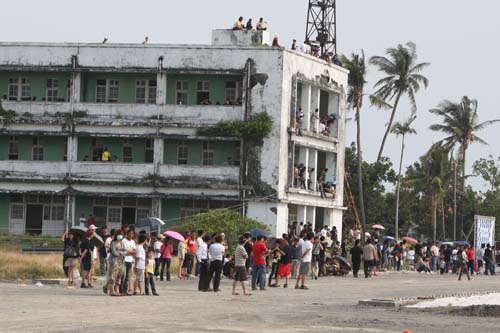 | 當天觀眾人潮從四面八方湧入,甚至連未開放的區域都有民眾擅自闖入,注意看看屋頂上的民眾,實在相當危險! |