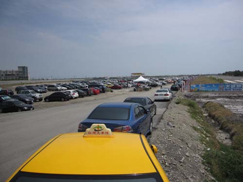 | 大鵬灣設置的臨時觀眾停車場大爆滿,當天實際車輛數超過一千台! |