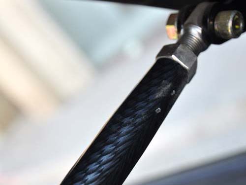 | 行李箱拉桿由碳纖維材質加工而來,優點是重量輕,強度高並且十分漂亮。 |