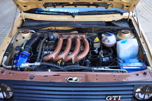 由於把這輛車收回來的時候已經瀕臨報廢,除了車身和底盤之外,幾乎有所部件都已老化,性能衰退極其嚴重,尤其是那顆1.6L的化油器引擎。為了能夠讓它重新煥發青春,車主不得不又收購了一輛20氣門引擎的國產Jetta作為拆車零配件。首先就是將整套引擎波箱移植到Golf中,並將前後懸掛中的重要組件也一併轉移,這樣一來,這輛Golf就至少年輕了10歲。為了能夠做出一輛較為全面的Golf MKII改裝車,車主特別為其選定了K&N進氣風箱以及訂製的全段排氣管,並且ECU程式進行改寫,將轉速紅區提升至8000rpm,拓展了更加寬廣的扭力,憑藉著兩廂輕巧的車身,動力表現值得肯定,油門影響迅速並且加速輕快有力。這輛Golf MKII也同樣使用了M’S Racing出品的避震器,也是為了同一個目的而選用的,目前車主已經開始著手尋找PQ32平臺的氣動避震器,相信過不了多久,馬路上就可能會出現一台,甚至是N台完全趴在地上的MKII了。
