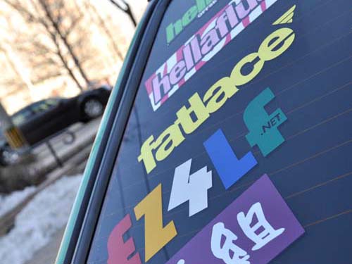 | 後擋上的這一組貼紙相信筆者不必過多解釋,它們的存在就是為了一個字—「潮」。 |