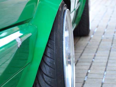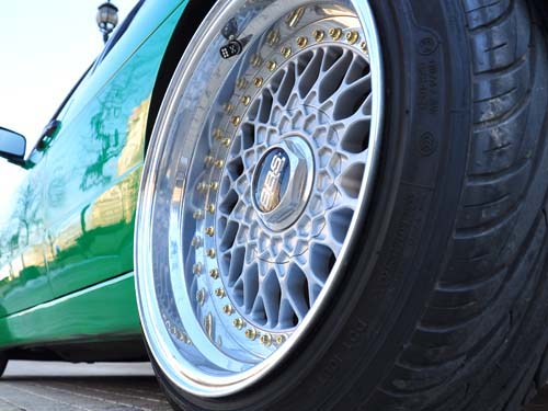 要想得到爆龜輪胎的效果,首先要有一套寬度十分可觀的輪圈,其次就要去輪胎店不厭其煩的去尋找能夠扒上9J輪圈的窄胎,為什麼要說窄胎?因為9J的輪圈至少要配上225的寬度才算合適,但是為了能夠達到爆龜胎的效果,所以輪圈寬度就不能夠超過205,加上有些輪胎在胎壁上有保護層,能套上去的輪胎少之又少,所以品牌及型號方面幾乎沒有任何要求,只要能扒上就好。內裝方面其實不需要任何改裝,老車的內裝設計得應該算是非常落伍了,所以拿來現在的任何內裝改裝部品來說,都是會有突兀感的,既然如此還不如什麼都不改。不過一些細節也可以盡可能回復其原來的面貌,就像那個德國原版的四幅方向盤,雖然不漂亮,但是細細品味後發現還是很有味道的。
