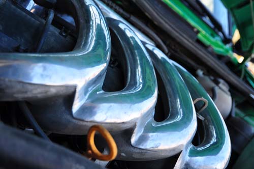 | 進氣歧管經過了精細的拋光處理後,成了引擎室內最搶眼的部件,而這種類似香蕉般造型的管路才是20氣門引擎的最大特徵。 |