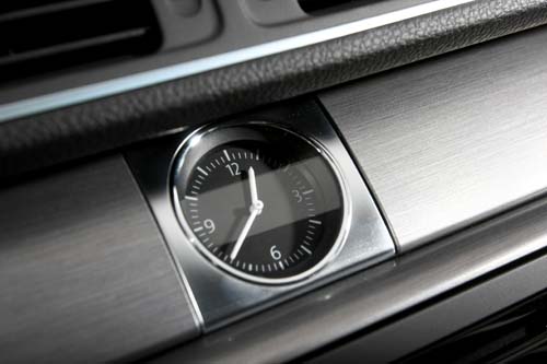 | 設置於中控檯上的古典石英鐘與Press and Drive啟動系統,擁有猶如豪華房車般的座艙氛圍。 |