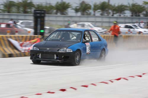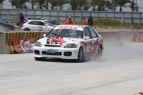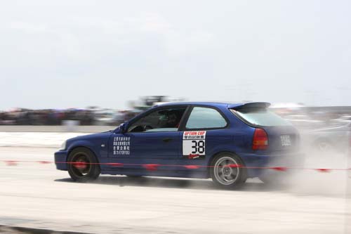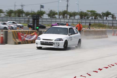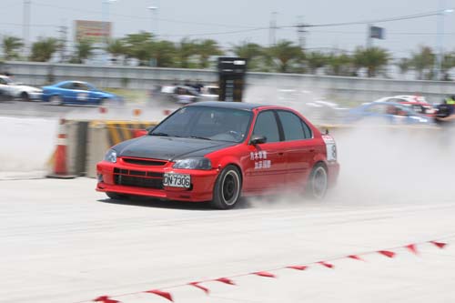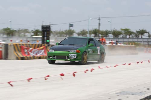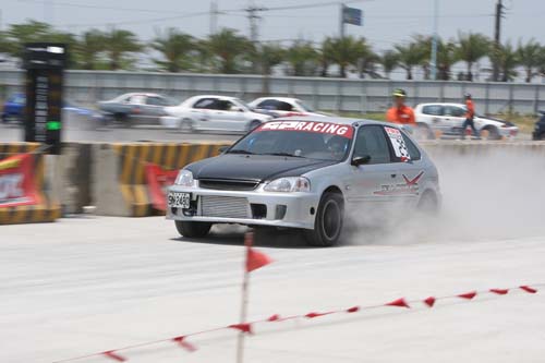 | 亞軍車號:38姓名:吳啟揚店家:川頁車輛:K8成績:反應時間/秒經過時間/秒總時間/秒末速度km/h第一回合起跑失敗起跑失敗起跑失敗起跑失敗第二回合0.501/14.333/14.834/140.99第三回合0.622/14.033/14.655/184.93這輛K8腹內使用鍛造連桿與金吉星活塞外掛一具RX6渦輪,最大增壓值維持在1.2bar。車主表示其實壓根就沒想過會得到獎盃,只能說是運氣好而已,不過他覺得跑道有點短,雖然他使用R888熱熔胎加上加大煞車碟,還是很怕全力衝刺會停不下來,看看場地方面能不能夠再改善。 |