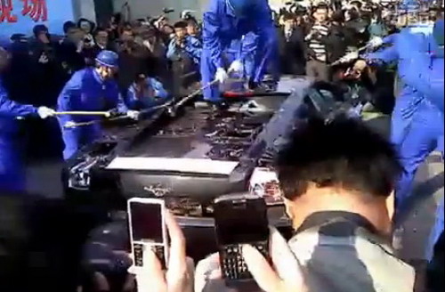 看了這則報導與Gallardo被硬生生被敲毀的影片之後,心裏的感受真是「痛」!雖然這車子是這位青島仁兄的,要怎麼搞是人家的事,但看在愛車人士的眼裡,一輛如此迷人尊貴的Gallardo超跑居然被鐵槌活生生給敲毀殆盡,這行為真可像是「虐殺動物」般的殘忍啊!難道一定要以這樣激烈手段才能表達心中對Lamborghini的不滿與抗議嗎?還只是想藉此來向眾人來炫耀他的龐大財力呢?