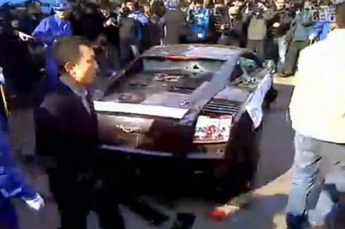 | 這輛Gallardo車主居然請工人砸毀自己的座車。 |