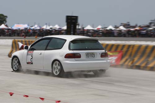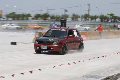 | NA 2WD 1.5L以下組冠軍車號:01姓名:許漢祥/店家:聖豪/車輛:March成績: 反應時間/秒 經過時間/秒 總時間/秒 末速度km/h 第一回合 1.235 19.200 20.435 109.3 第二回合 0.681 19.575 20.256 110.2 第三回合 X X X X/這輛由台南聖豪所改裝的March可以說是全場最慢的「冠軍」得主,因為該組只有這一輛車參賽。本車引擎維持原廠型式,腹內區軸連桿經過高轉平衡處理,外掛一部e-manage電腦進行調校,雖然本車排擋方面還是維持自排設定,但速度上跟原廠車比起來其實還是有不小的差異。 |