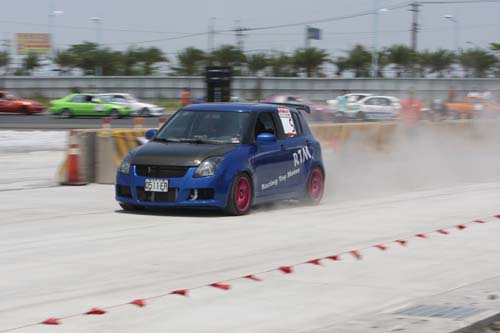 | 車號:03姓名:楊承濠店家:RTM/車輛:Swift成績:反應時間/秒經過時間/秒總時間/秒末速度km/h第一回合0.856/15.919/16.775/152.54第二回合0.826/15.22/16.046/163.63第三回合0.589/14.924/15.513/178.21 |