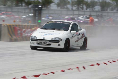 | 冠軍車號:46姓名:黃柏豪車隊:Corsa Sport車輛:Corsa成績:反應時間/秒經過時間/秒總時間/秒末速度km/h第一回合0.34016.75417.094141.36第二回合0.615/16.068/16.683/140.25第三回合0.712/16.426/17.138/148.35這輛Corsa植入Altra 1.8L的引擎系統,且還換上兩支Dblias 266的高角度凸輪軸,周邊方面使用手工自製的進氣歧管與排氣系統,而電腦部份則是外掛一部e-manage電腦進行調校。車主表示起跑處實在太滑了,因此起 |