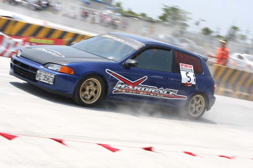 | 冠軍車號:56姓名:黃坤元店家:嘉義全來車輛:K6成績:反應時間/秒經過時間/秒總時間/秒末速度km/h第一回合0.51612.80813.324181.81第二回合0.203/13.188/13.391/202.24第三回合0.610/13.468/14.078/175.89這輛K6使用B18C引擎為基礎,換上CP鍛造活塞與Eagle連桿,渦輪則是選擇少見的IHI C7本體,增壓值設定在1.45bar,預估馬力約有450hp的水準。阿元表示他起步轉速只拉到4000左右,而渦輪在起步之後才會開始增壓,否則會發生打滑的 |