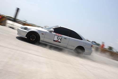 | 冠軍車號:53姓名:施宏憲店家:泓源(巡技研)車輛:K8成績:反應時間/秒經過時間/秒總時間/秒末速度km/h第一回合0.716/14.167/14.883/156.52第二回合0.670/14.133/14.803/169.27第三回合0.692/13.905/14.597/175.89施宏憲這輛K8引擎採用B18C本體,並換上超過300度以上的凸輪軸,搭配Power FC點腦進行調校。車主表示場地問題真的是很大的困擾,尤其是起跑點,就算他使用了16吋255的R888熱熔胎還是無法抓住,因此僅能夠以6000轉來起跑,若是 |