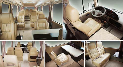 | 寶斯通中型客車可依照不同配置,提供各種內裝格局的設定。 |